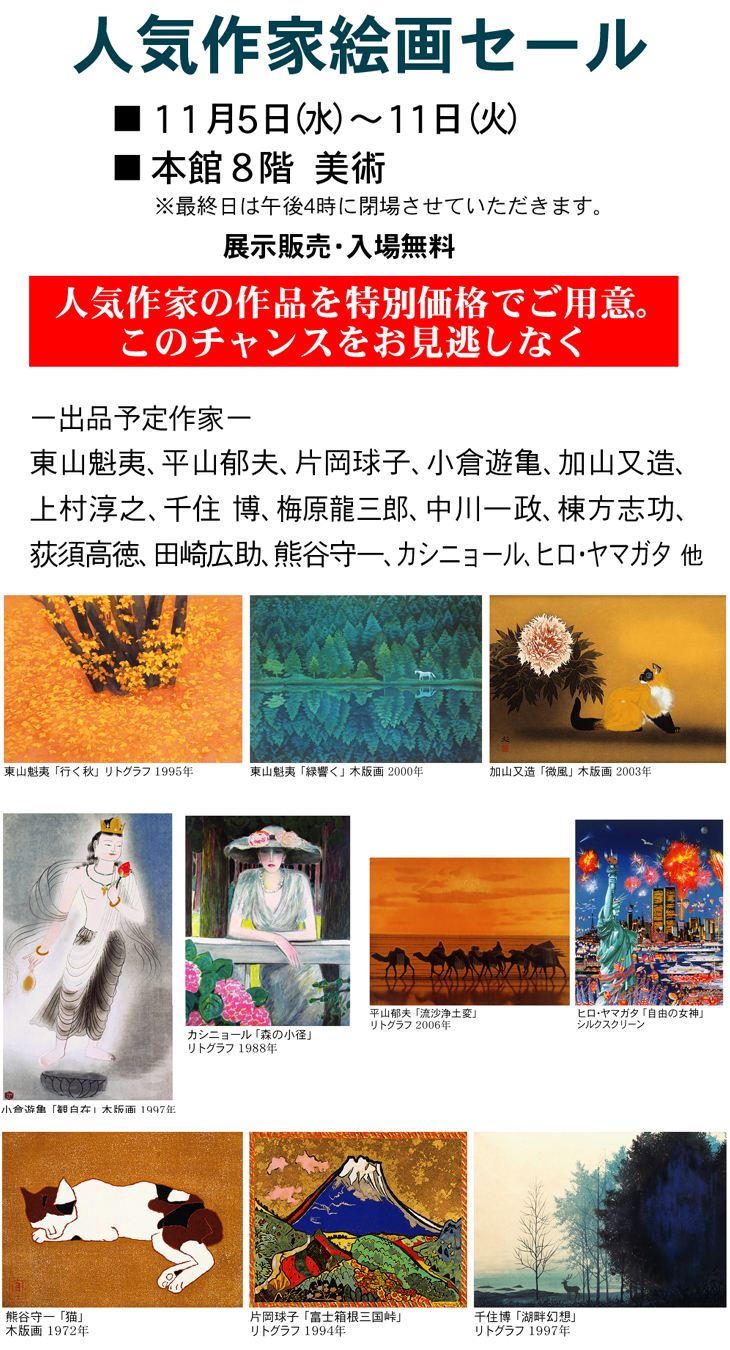 ●人気作家絵画セール 11月5日(水)〜11日(火)
