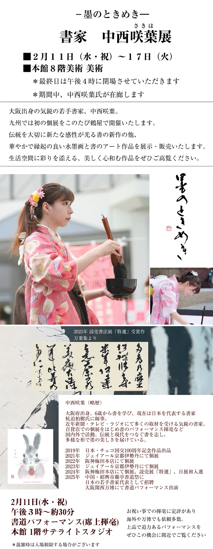 ●―墨のときめき―書家 中西咲葉展 2月11日(水・祝)〜17日(火)
