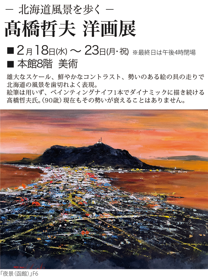 ●―北海道風景を歩く― 橋哲夫 洋画展 2月18日(水)〜23日(月・祝)