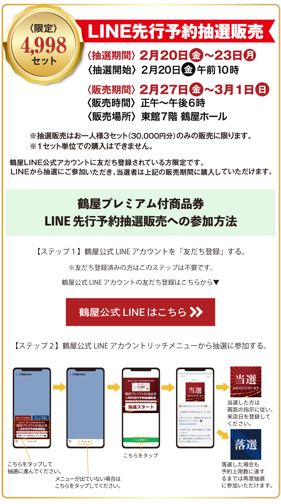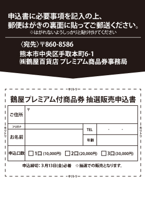 > 鶴屋プレミアム付商品券販売のお知らせ