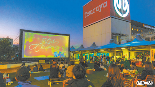 鶴屋の屋上で野外シネマ上映会を開催。