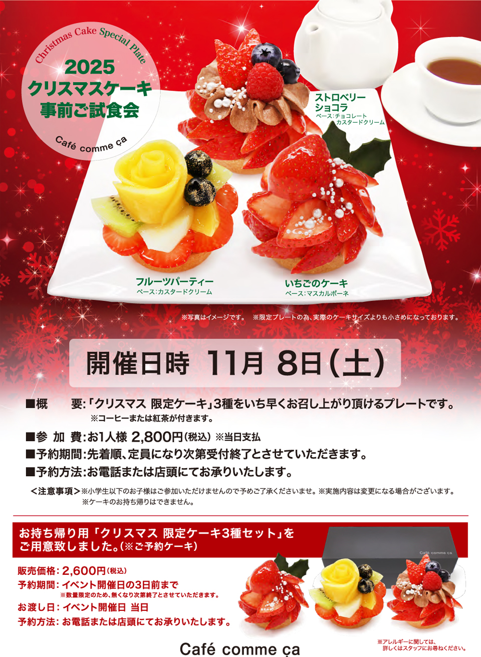 カフェコムサ 2025クリスマスケーキ事前ご試食会