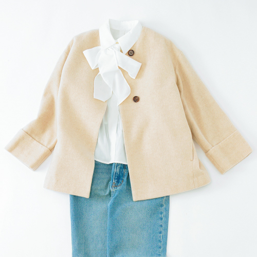 この冬のマドモアゼルノンノンのおすすめは大人にぴったりなテーラーカラーのコート。柔らかい中にもハリコシが表現できるように5種類のウールをブレンドしています。