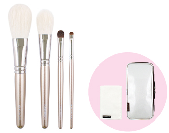(パウダー筆〈ヤギ・合成繊維〉、チーク筆〈ヤギ〉、アイシャドウ筆〈馬〉、アイシャドウ筆〈馬〉、筆ぬぐい、ケース)