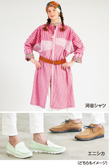 遊び心のあるデザインと豊富なサイズ展開で着る人をたのしくするシャツ【河谷シャツ】、軽さとしなやかさに優れ、雨の日でも安心して使えるジビエ鹿革の靴【エニシカ】が登場します。