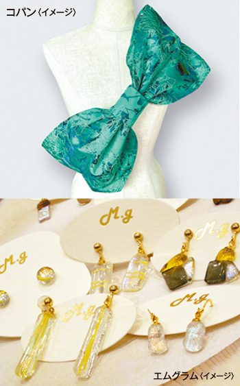 遊び心と大人っぽさをミックスさせたアクセサリーやバッグの【コパン】、ガラスならではの透明感と鮮やかで自然な形が美しいアクセサリー【エムグラム】がそろいます。