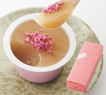 北海道産の白小豆の風味とうまみを引き出し、あっさりと仕上げたようかんです。別添えのさくらクランチをかけてお召し上がりください。