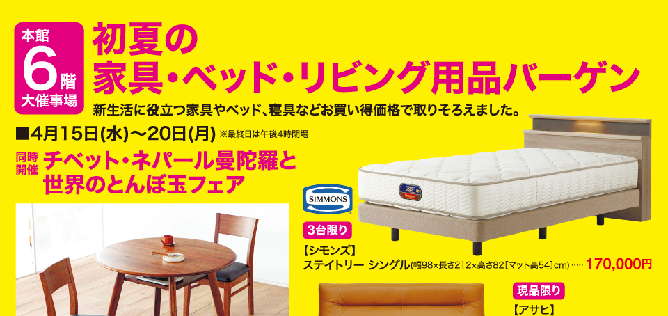 初夏の家具・ベッド・リビング用品バーゲン