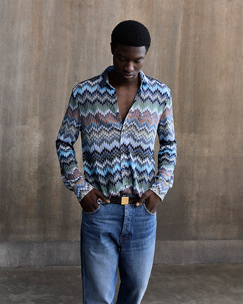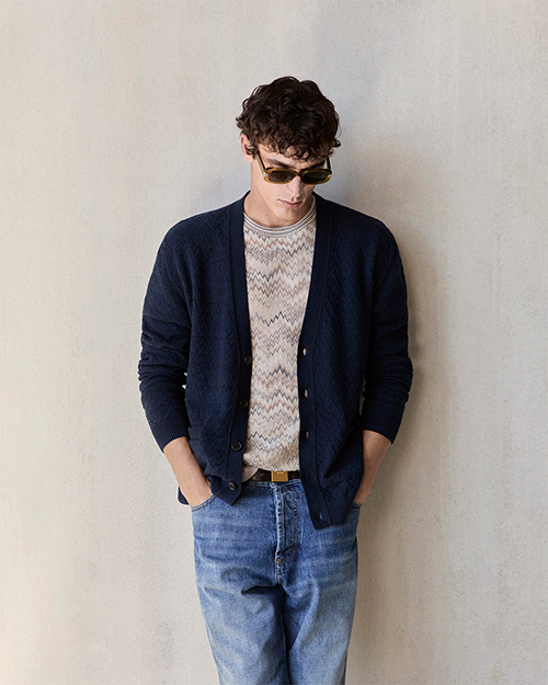 アイコニックなジグザグをブルーのカラーパレットで再構築。自然体の中にミッソーニらしい品格を感じさせる。