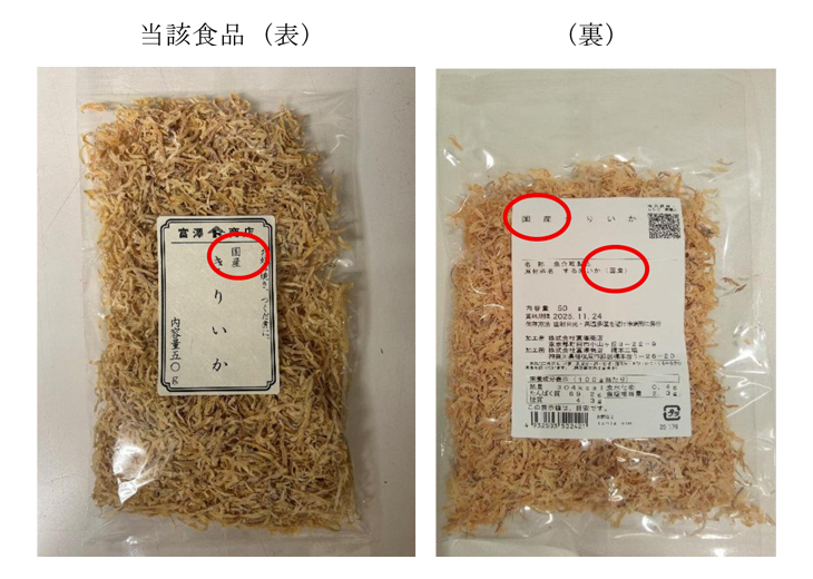 1.商品名 / JANコード / 販売価格(税込み)/ 対象商品の賞味期限 / 原料原産地表示の誤表示内容
