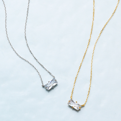 大切な想いを、胸元に輝かせて。きらめくキュービックジルコニアをセッティングした上品なネックレスと耳元で煌めくピアス。それぞれの輝きが響き合い、いつものスタイルを華やかに彩ります。