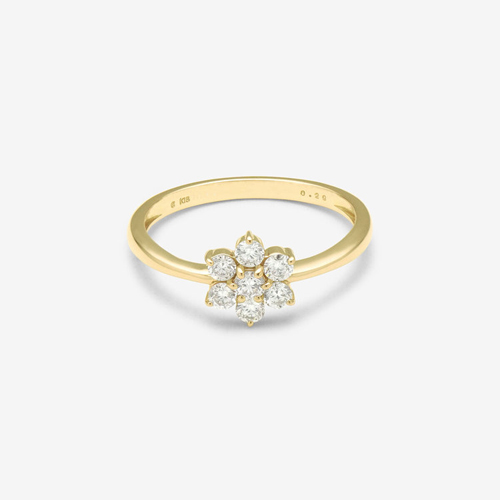 道標の星の様に輝くイエローゴールドリング。7石のダイヤモンドを星の形にセッティングしました。セブンスターのモチーフには「願いの成就」等の意味が込められており、自分へのご褒美におすすめです。