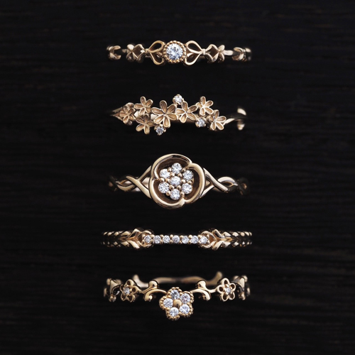 花や植物など愛され続けてきたモチーフをジュエリーに映し出したシリーズ。偶然が生む優美な曲線を丁寧に形にし、豊かなバリエーションでお届けします。