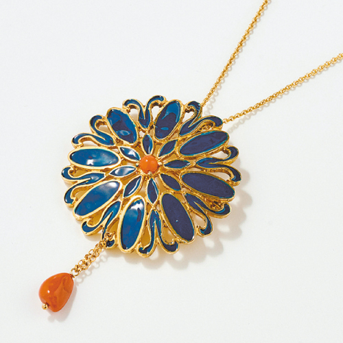 〈エッフェ〉リディアルケーゼ珊瑚エナメルペンダント&ブローチ(ヘッド4×4cm、チェーン20cm)