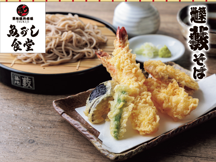 北海道産の石臼びきそば粉を使用した手打ちそばと、代々続くかえしから取った辛めのそば汁、ボリュームたっぷりの天ぷらをお楽しみください。