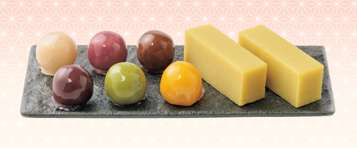素材の良さを生かした「芋ようかん」と6種類のあんこを丸めて寒天でくるんだ「あんこ玉」の詰合せです。