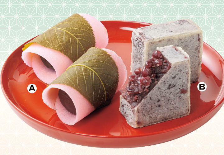 (A)桜餅・(B)きんつば