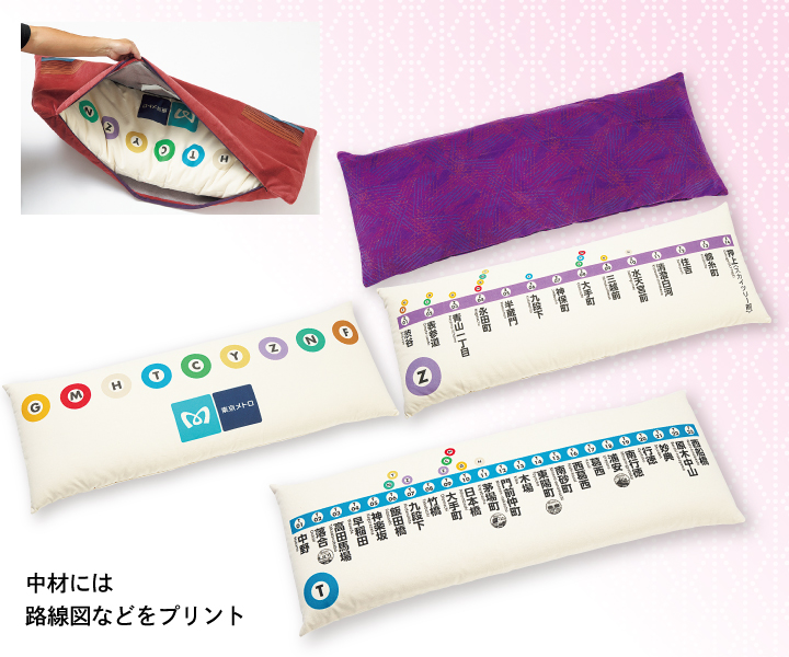 東京メトロの車両で実際に使用した座席の生地で作った長座布団です。