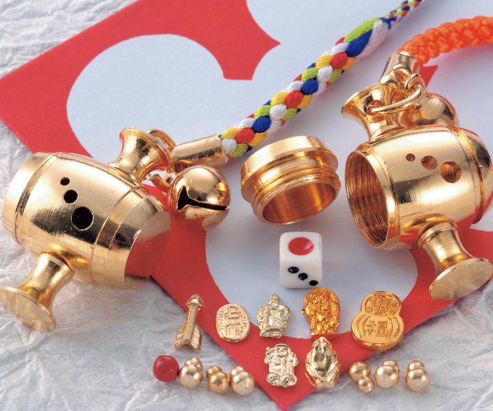 古代より伝わる縁起物10種を、健康を祈りながら軽快な口上とともに、小槌の中にお詰めします。