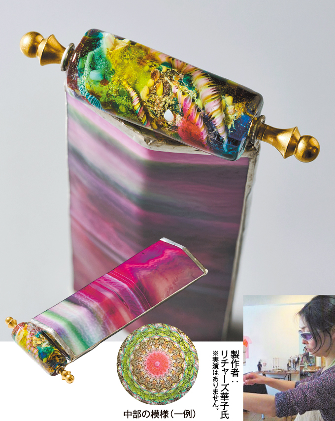 そうしたささやかな美しさをランプワークによるガラス玉に映し込み、そのガラス玉をオブジェクトとして組み込んだ万華鏡を制作しています。