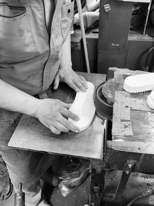 基本素材は、良質な国産黒毛和種を使用し、靴底にもイタリア産のフレキシブルなレザーソールに天然ラバーに卵の殻を配合した特殊な素材を使用。
