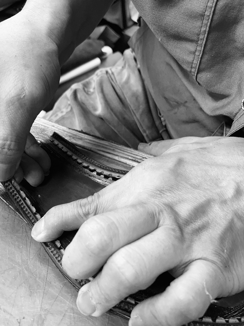 手仕事の技法を守りながら、すべての工程を自社で一貫して行い、素材の美しさと温もりを生かすことを大切にしています。