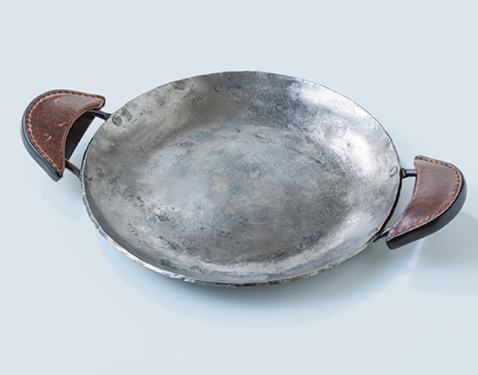 鍛鉄のフライパン 鍛月 FUTATE 2.8mm イビザグリップセット(直径20cm、鍛造鉄、取手:牛革)