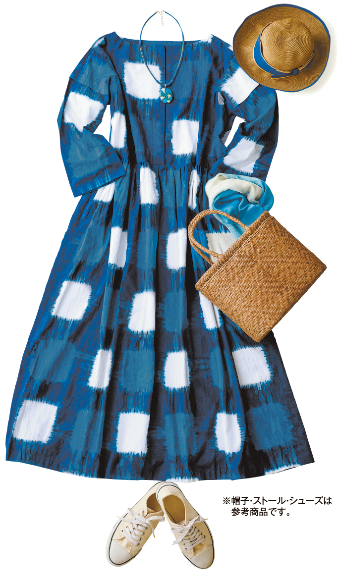 本藍染絞りワンピース(綿100%、Lサイズ)