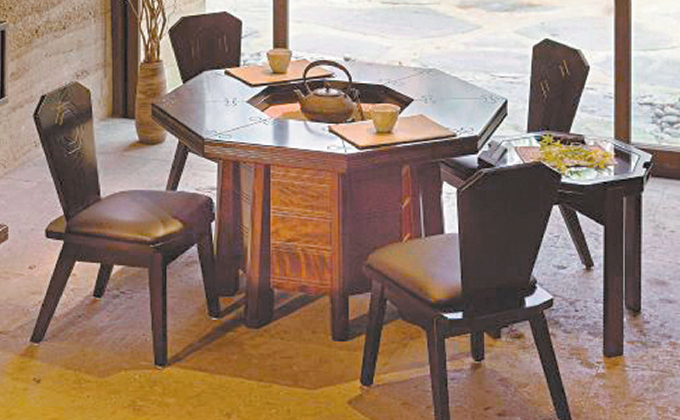 八角炉110サイドテーブル付(カバザクラ材、幅110×奥行110×高さ64cm、サイドテーブル兼中ぶた置き:幅55×奥行55×高さ52cm)