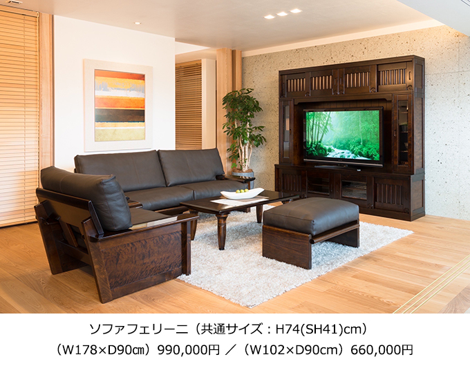 樹齢数百年の良質なサクラ材を主要材とし、自社工場で製材、乾燥を行い仕上げています。伝統的かつ独創的なデザインで温もりのある空間に。