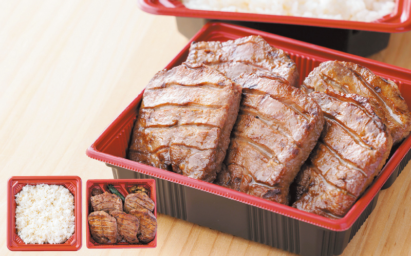 牛たんの中でもやわらかい希少 部位の「芯たん」を、5枚そのままのせた、ボリューム満点のお弁当です。