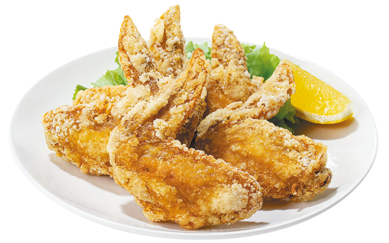 日本最大級の館鼻(たてはな)岸壁朝市で人気の一品。手羽先をカリッと揚げたあっさり塩味です。