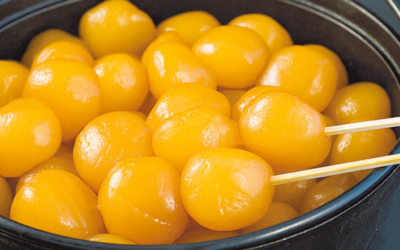 山形名物の玉こんにゃく。しょうゆのしみた懐かしい味わいです。