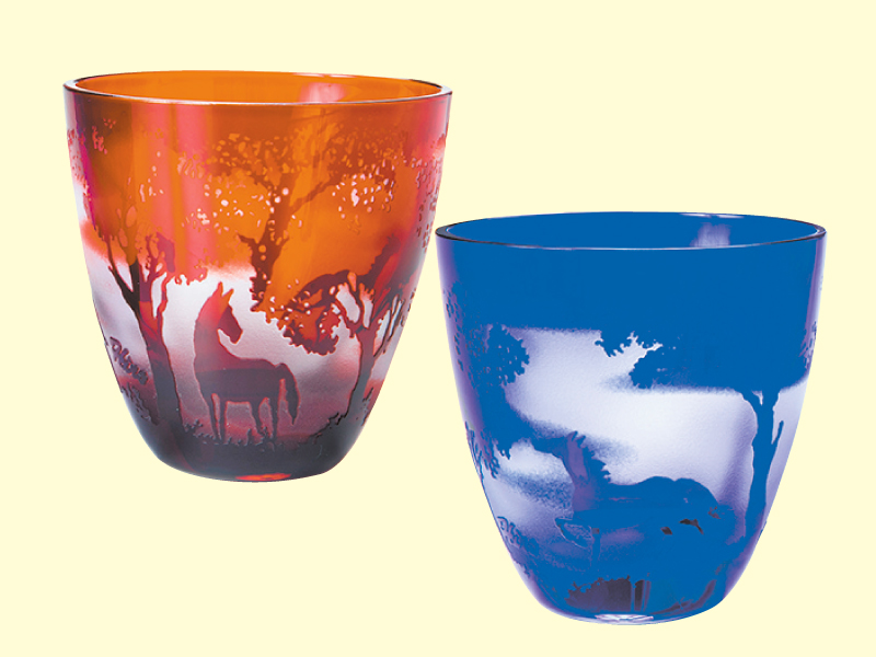サンドブラスト加工によるガラス彫刻品。今年の干支、午を刻みました。