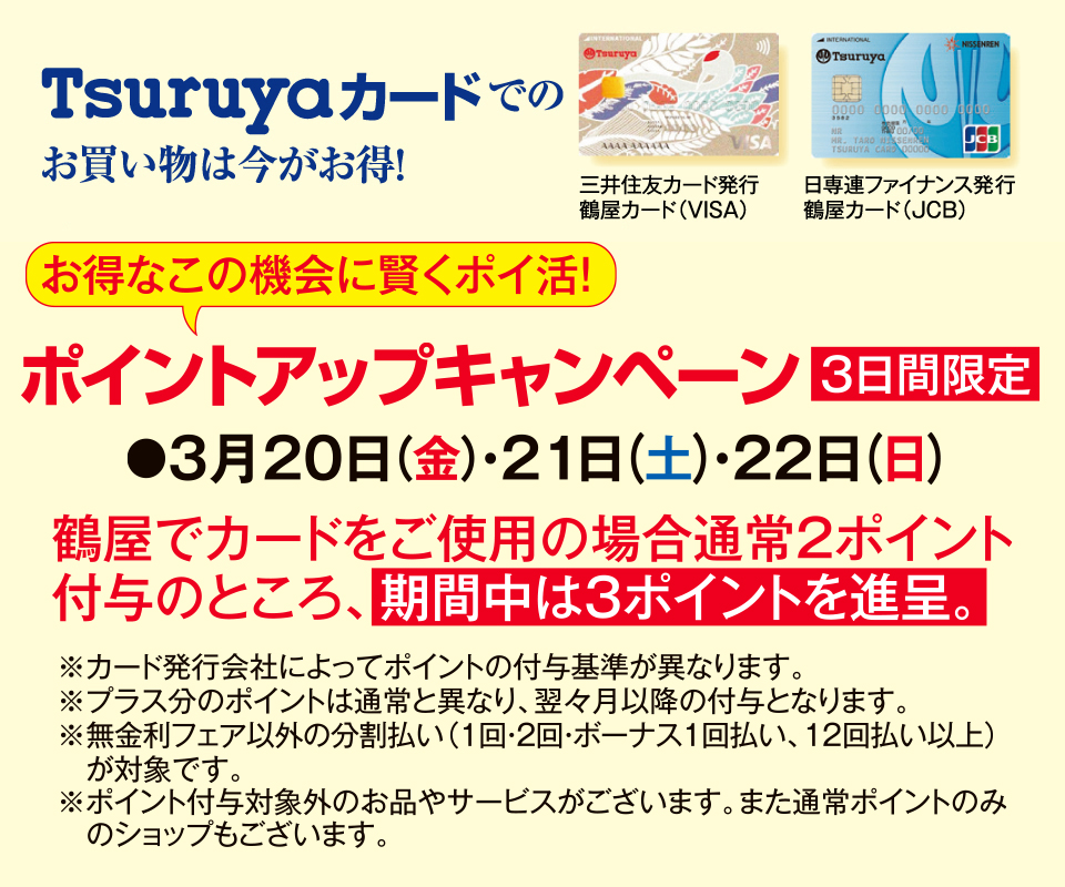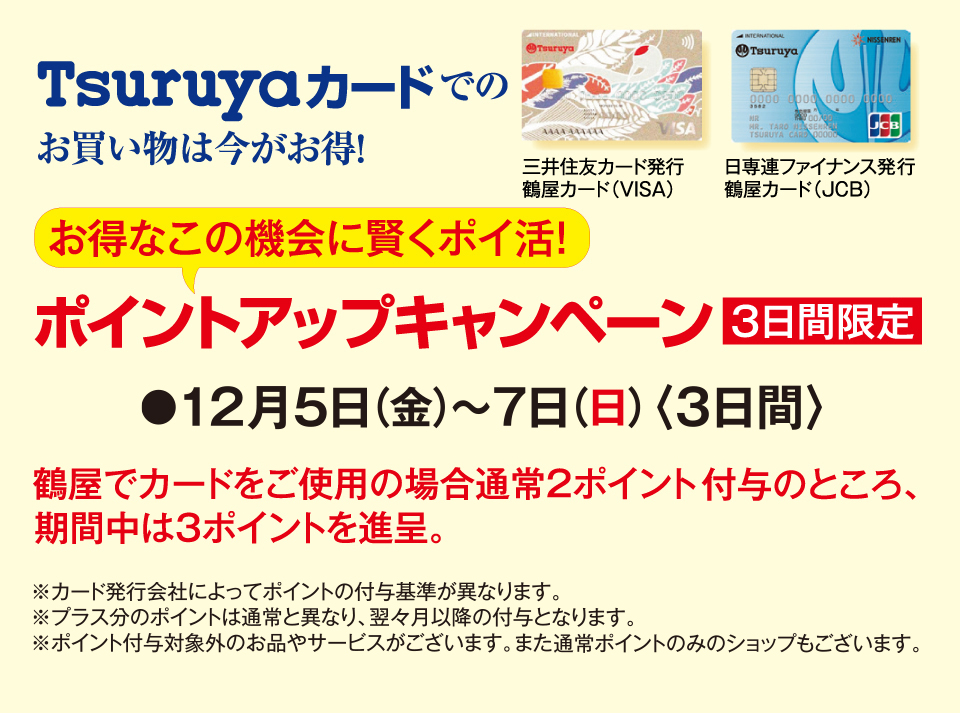 ※鶴屋でのご利用200円(税込)で2ポイント(鶴屋以外は1ポイント)