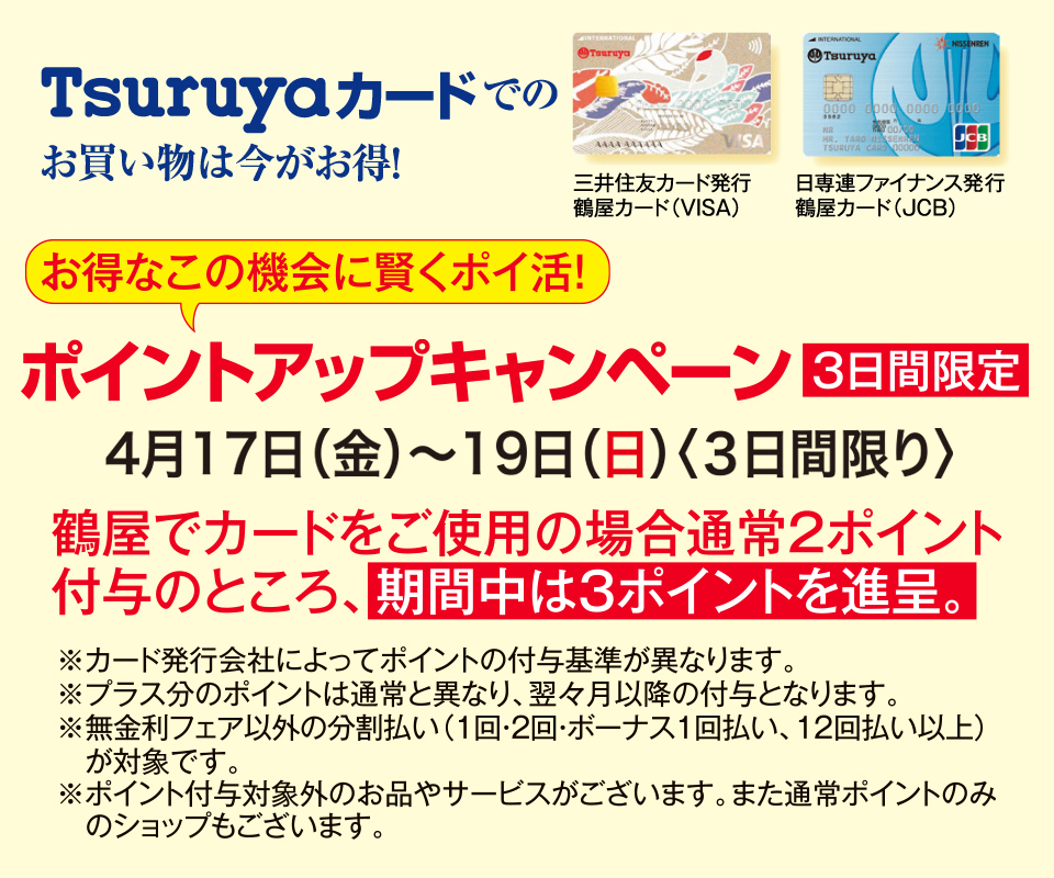 ※鶴屋でのご利用200円(税込)で2ポイント(鶴屋以外は1ポイント)