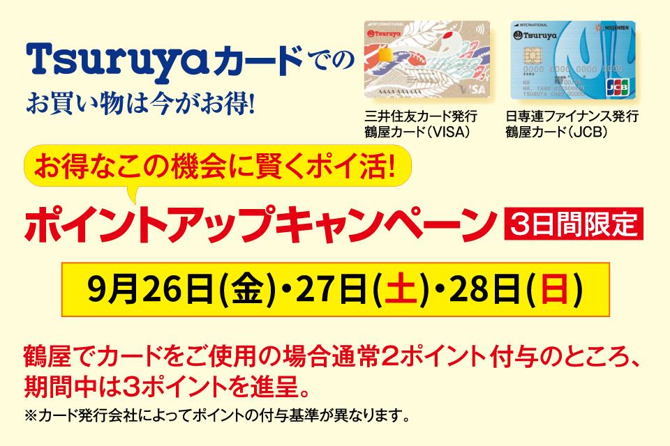 ※鶴屋でのご利用200円(税込)で2ポイント(鶴屋以外は1ポイント)