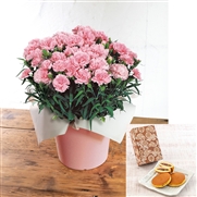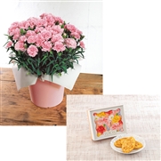 【日比谷花壇】カーネーション「感謝の気持ち」ピンク・長ア堂「栗入りみかさ」セット<産地直送・送料込み>