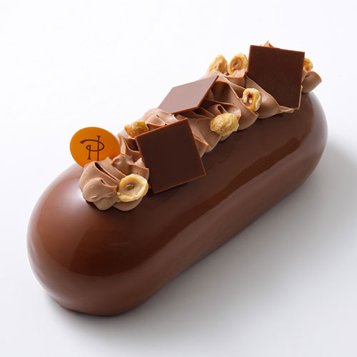 チョコレートとプラリネを組み合わせた古典的なフレーバーをピエール・エルメ流にアレンジした〈プレジール シュクレ〉。味覚の喜びを倍加させるために、甘くまろやかなミルクチョコレートのとろり感とヘーゼルナッツプラリネのかりかり感が交差するテクスチャーを強調しました。