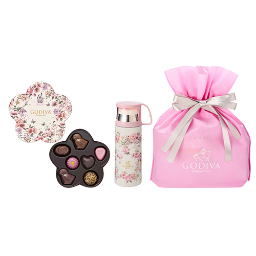 ”ありがとう”の気持ちを伝えるギフトセット。春らしい色とりどりの花を表現したフラワー形のパッケージの心躍るチョコレートの詰め合わせと、オリジナルデザインのステンレスボトルをセットにしました。