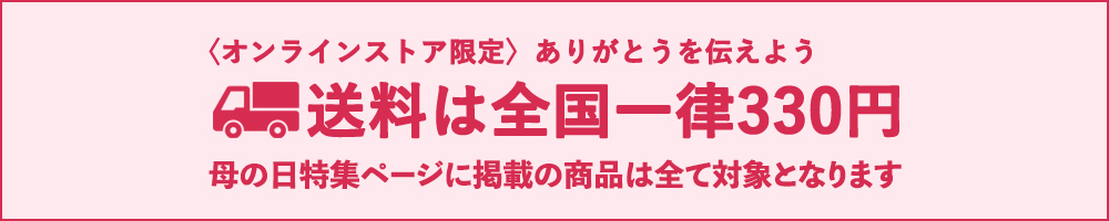 商品詳細ページに「母の日アイコン」がついた商品は、お届け先一件につき、送料330円でお届け致します。 母の日特集ページに掲載の商品は全て対象となります。