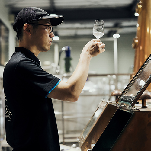 数百もの候補樽からスタッフが構成比率を調整し、テストブレンドを作成。製造から営業企画の部門に至るまで、スタッフ全員がテイスティングに参加し、意見をぶつけ合いながら方向性を定めていったそう。楽しみながらも妥協なく追求する姿勢が、一滴一滴に宿っています。