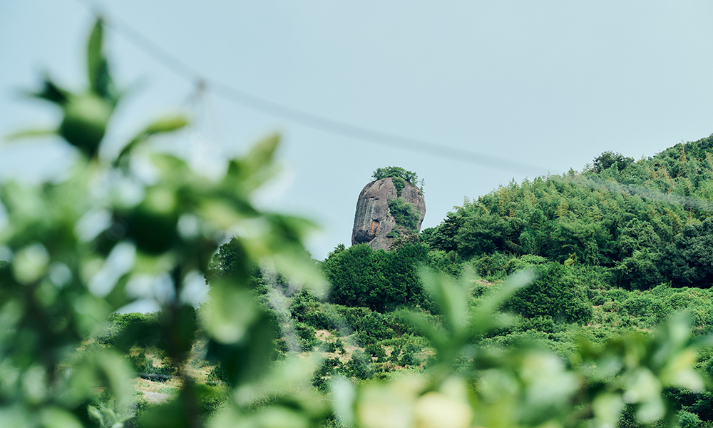 山鹿市街地から車で走ること20分あまり。標高389メートルに悠然とそびえ立つ「不動岩」の麓に『不動岩果樹園』のミカン畑が広がっています。