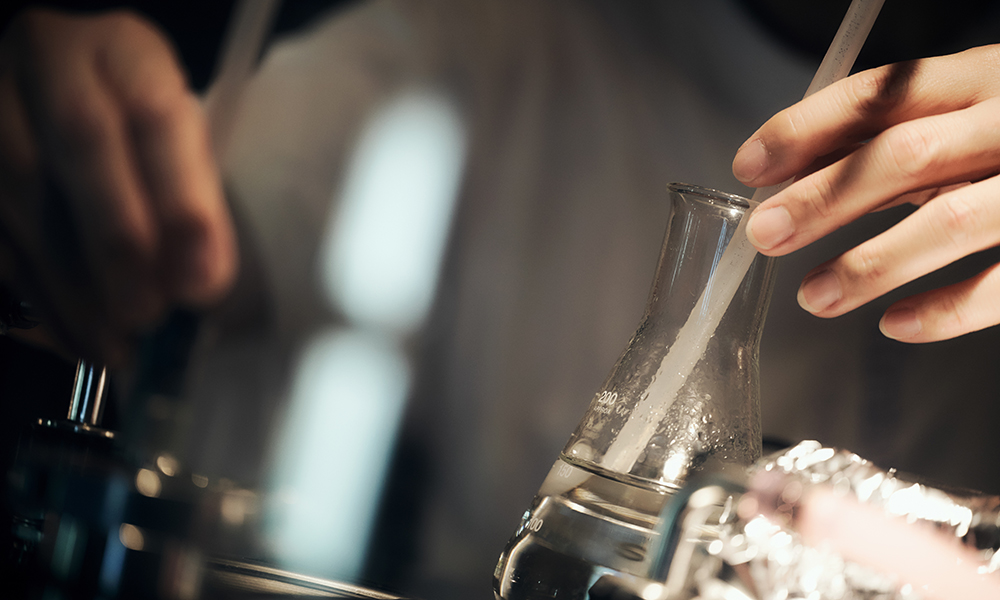 さらにクラフトビールを醸造する魅力について「まるで化学実験のよう」と語ります。「糖度を測ってアルコール度数を逆算したり、酵素がデンプンを糖に変える過程を見極めたり。アルコール5%を出すにはおおむね糖度12%程度、IPAならもっと高い糖度が必要になります。麦芽の量や煮方で糖度は変わりますから、それらを見計らいながら結果を確かめる作業は実験そのもの。仕込んだ直後の麦汁はまるで甘酒みたいに甘い香りがするのですが、これを味わえるのも作り手だけの特権であり、醍醐味ともいえます」