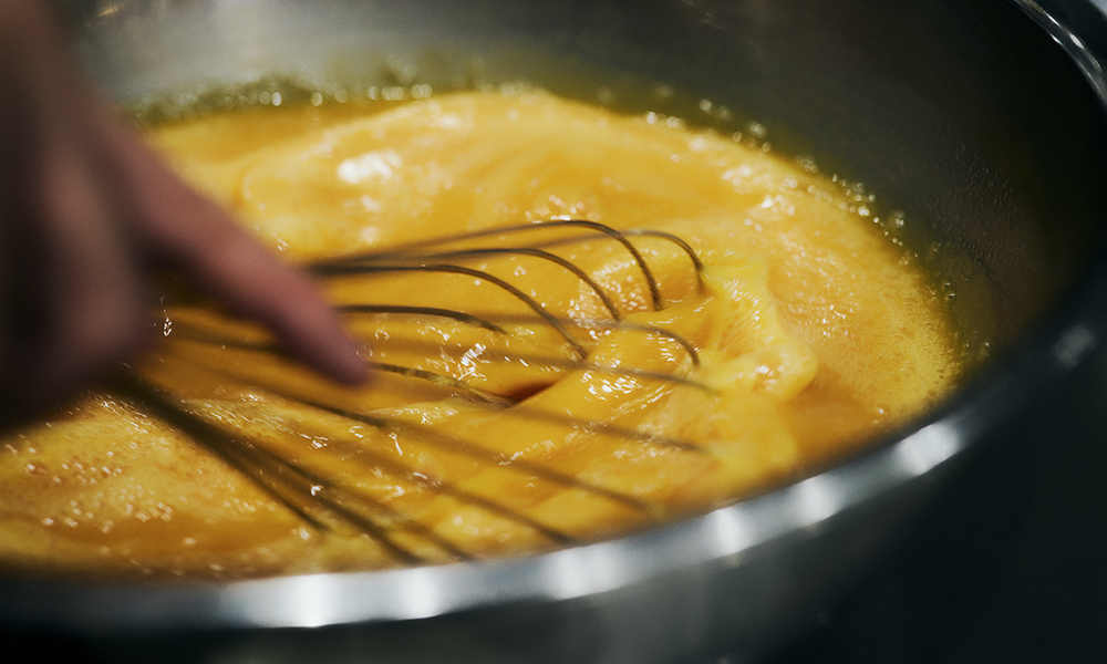 次兄の伸生さんや農家仲間が山鹿市菊鹿町で栽培した和栗を0℃で4週間かけてじっくりと熟成させ、風味と糖度が増した栗をペーストに。これを、アーモンド入りメレンゲの土台とホイップした九州産生クリームの上にたっぷりと絞り、ぜいたくなモンブランへと仕上げました。冷凍で配送されますので、冷たいままアイスケーキとして。また半解凍でセミフレッドのように味わうのもオススメです。栗の香りと上品な甘みが際立つ、とっておきの味わいをお楽しみください。