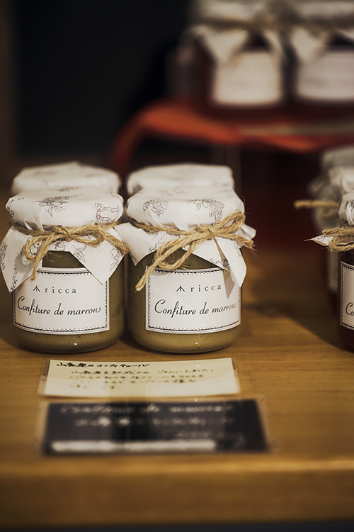 中でも定番の「山鹿栗のコンフィチュール」は、オープン当初から愛され続ける一品。自家製の栗ペーストにジャージー牛乳、九州産生クリームを加え、洋酒とバニラビーンズで香りづけ。粒感を残した栗の食感とともに、豊かな風味が口いっぱいに広がります。バターを塗ったトーストにのせれば朝のご褒美に、ウイスキーなど洋酒と合わせれば大人のデザートに。シーンを問わず楽しめる、モンブランのようにリッチな味わいが魅力です。