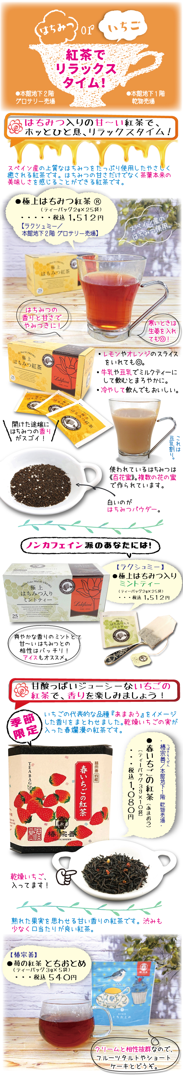 《はちみつ》or《いちご》の紅茶でリラックス、リフレッシュ!