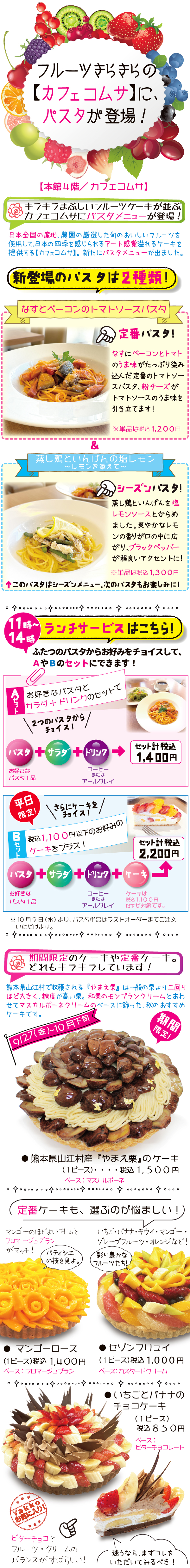 鶴屋70周年を記念しておいしいパスタが【カフェ&ブックス ビブリオテーク】と【アフタヌーンティー・ティールーム】に登場!