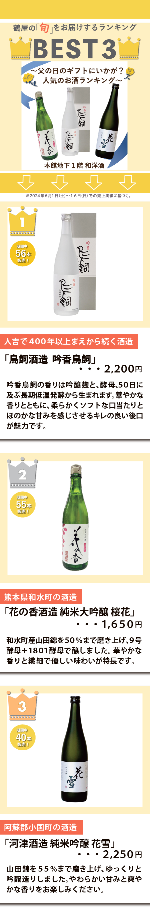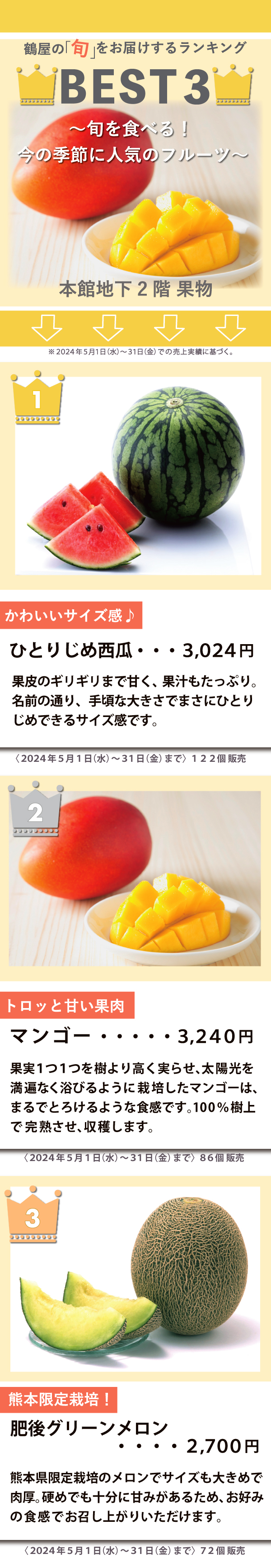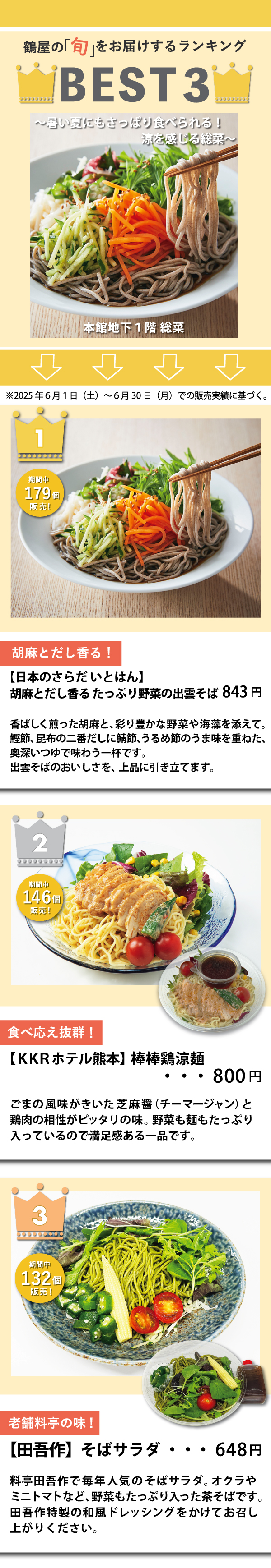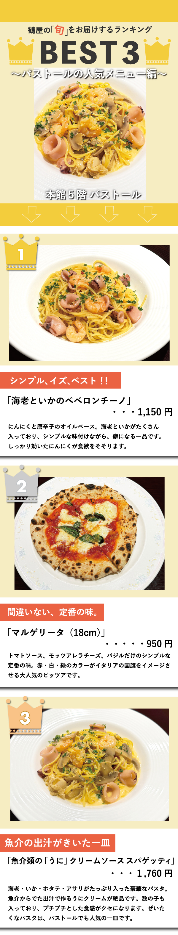 鶴屋の《旬》をお届けする『鶴屋ベスト3』、いろんなランキングありま~す!