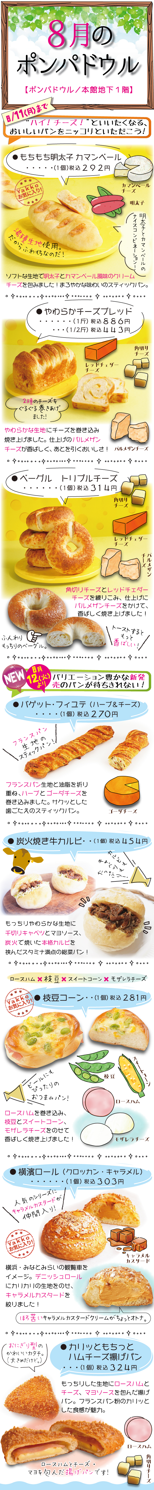 チーズ大好き女子Yakkoです。暑すぎて食欲減退がすすんでしまう今日この頃ですが、本館地下1階の【ポンパドウル】では、本日8月1日(金)より11日(月)まで、チーズ特集“ハイ!CHEESE!”を開催します!この時期、なぜ“CHEESE(チーズ)”なのか!?チーズにはタンパク質、カルシウム、ビタミンなども豊富、夏バテで不足しがちな栄養が補給しやすく、うま味、塩味もあるので、食欲がない時も食べやすい!(Yakko説)(^^)